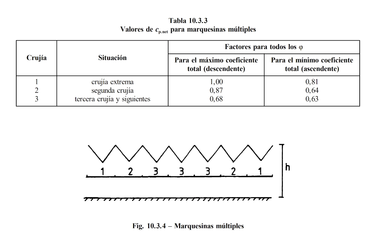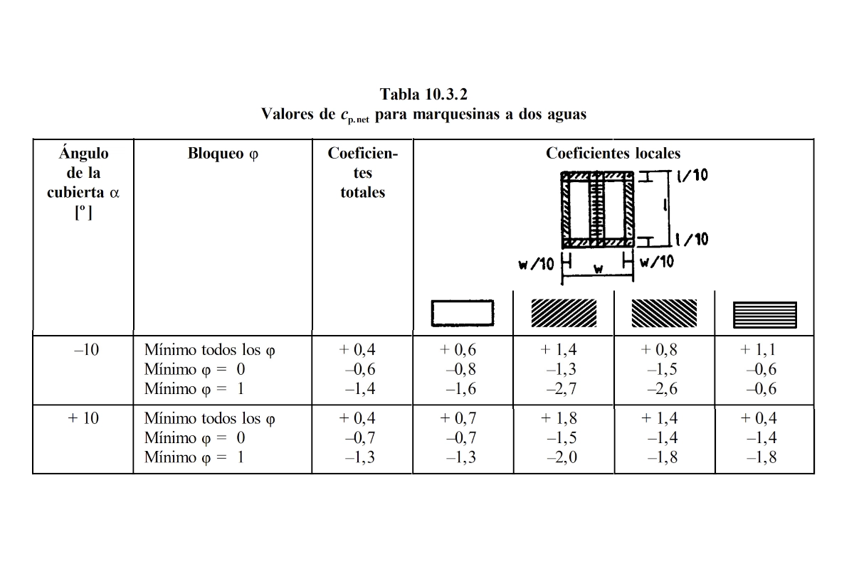 Aplicamos los coeficientes C_p de marquesina a dos aguas, corregidos por los factores de obstrucción, esenciales en el cálculo de estructuras PV en Eslovaquia.