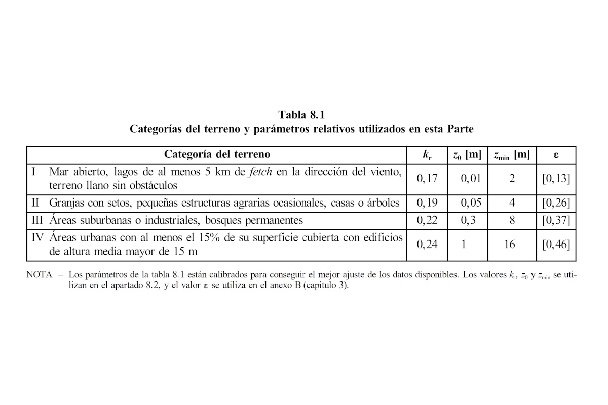 La velocidad básica de viento ( v_b ) en la zona es de 24 m/s. La presión dinámica ( q_{ref} ) se obtiene considerando una densidad del aire de 1.25 kg/m³.