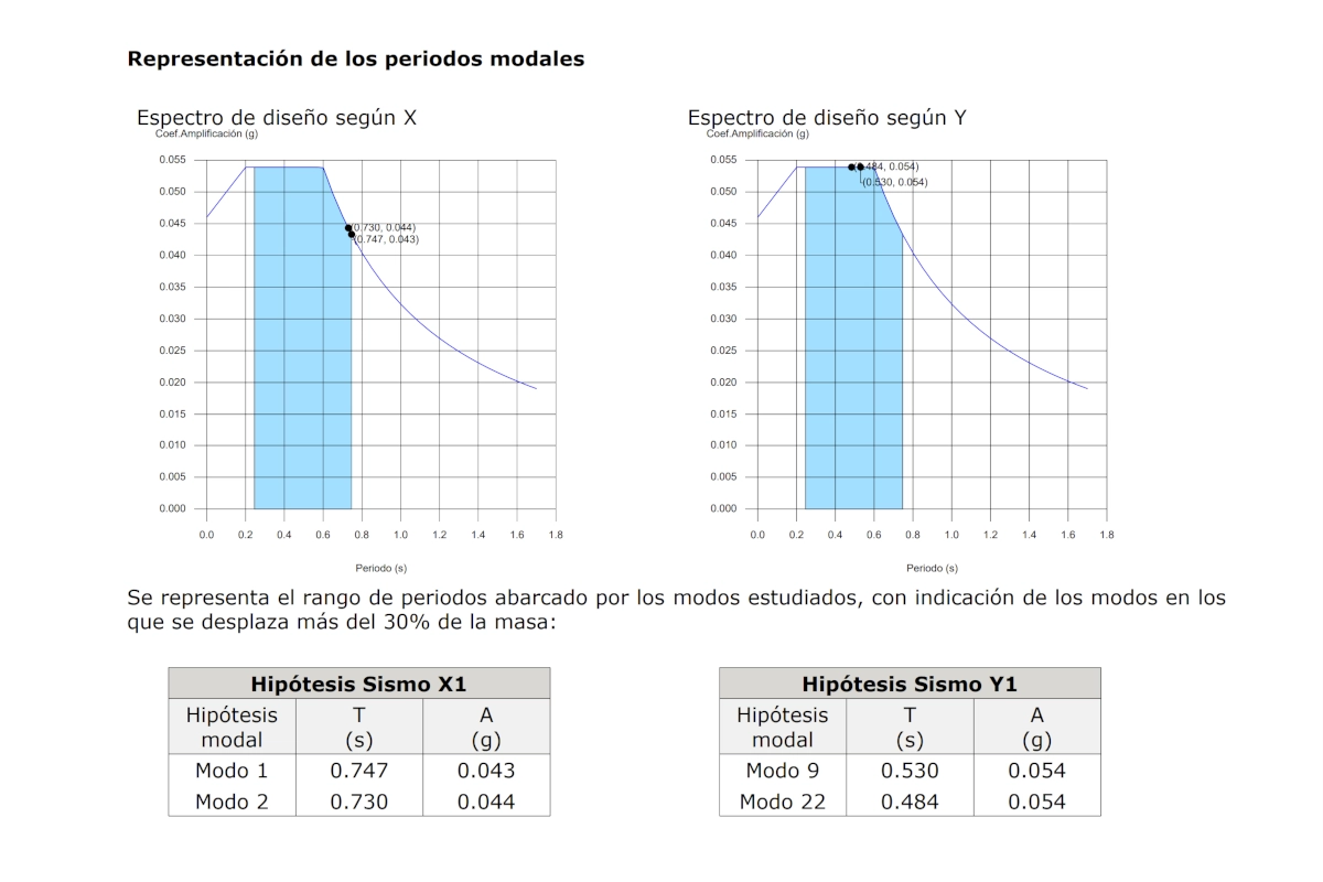 Hemos generado el espectro de diseño elástico para verificar la ductilidad y estabilidad, siguiendo el estándar de nuestros servicios de cálculo de estructuras.