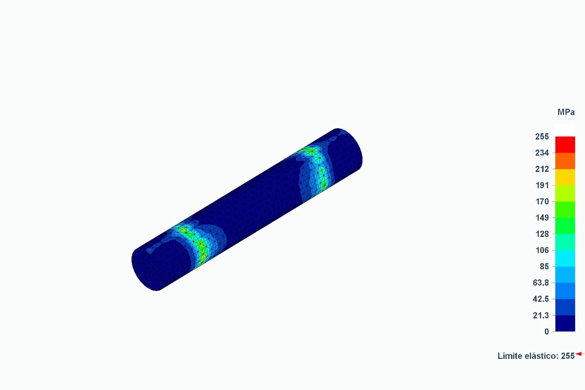Nuestro objetivo va más allá del cálculo: buscamos la seguridad total. Como parte de nuestro servicio especializado en Cálculo y Simulación FEM, simulamos las condiciones más exigentes para asegurar que los conjuntos trabajen siempre en régimen elástico. Esto garantiza que no sufrirán deformaciones permanentes.